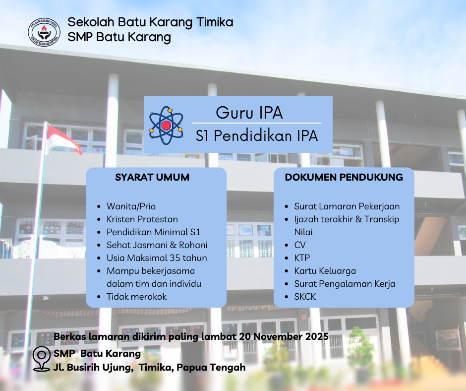 Prepare next generation with biblical values and good education adalah motto dari sekolah Batu Karang.